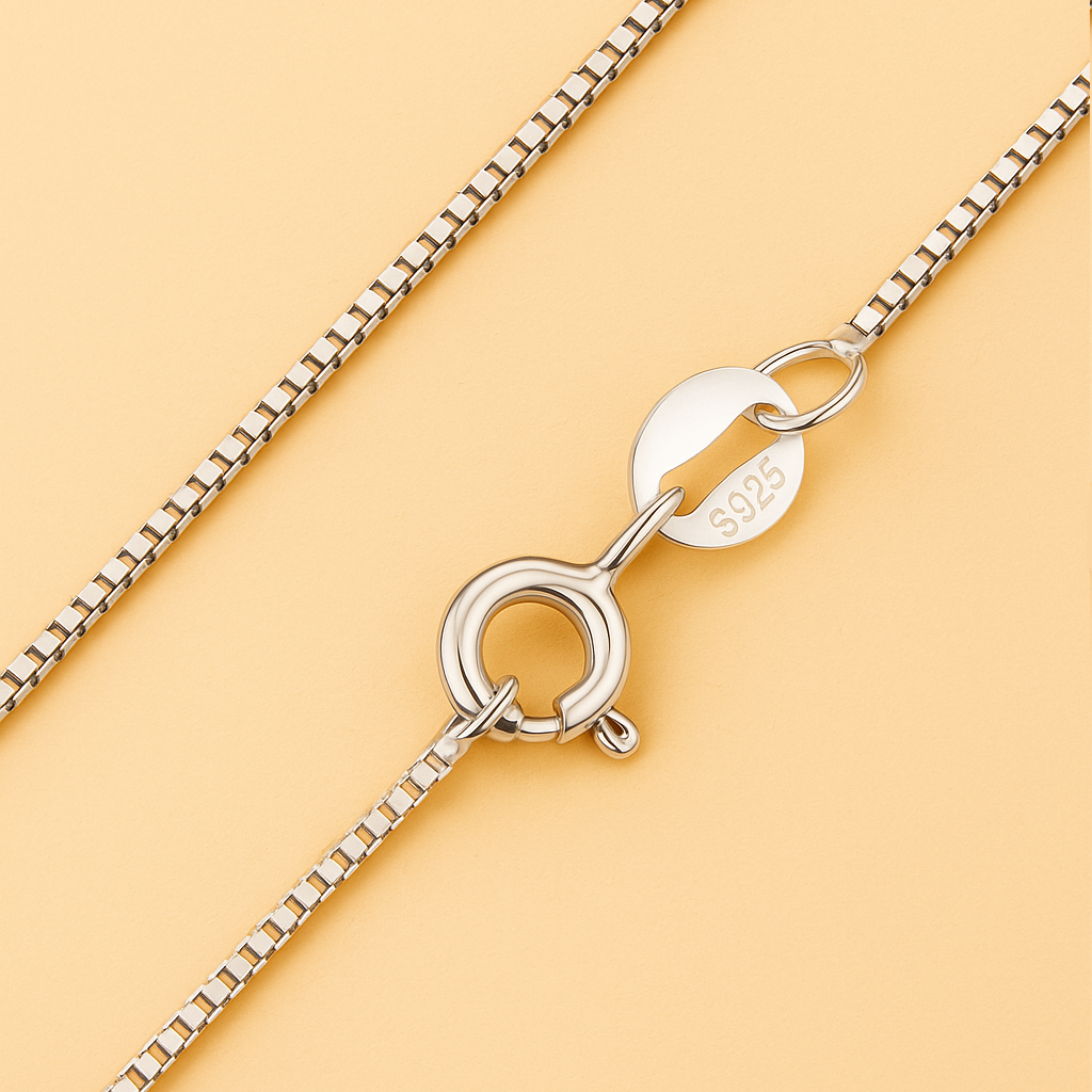Crafted from 925 sterling silver, the Classic Nexus Silver Edition showcases a timeless box chain design known for its strength and sophistication. This elegant piece combines exceptional quality with refined simplicity, making it a versatile accessory suitable for both everyday wear and special occasions. Its durable construction ensures lasting shine and resilience, reflecting expert craftsmanship in every detail.